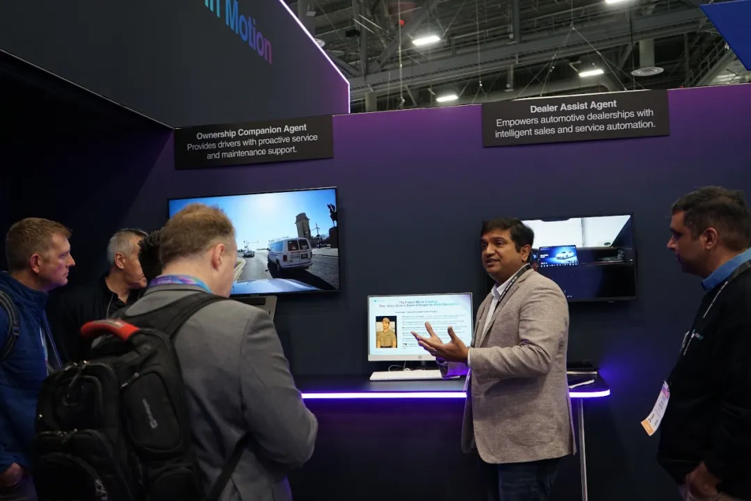 与SiMa.ai深化合作的端侧AI解决方案,成为本次展示的另一大技术亮点——小语言模型CaLLM™ Edge在SiMa.ai高能效机器学习系统级芯片(MLSoC)Modalix上高效运行,凭借增强的多模态能力(融合语音、触摸、视觉与外部环境理解),实现性能提升、延迟降低与卓越能效的完美平衡。更关键的是,该方案无需依赖云端连接,即可在本地实现快速、低功耗且更具成本效益的人机交互,同时所有交互数据均在本地处理,避免了云端传输带来的隐私风险,为驾驶者带来更稳定可靠且隐私安全的体验。