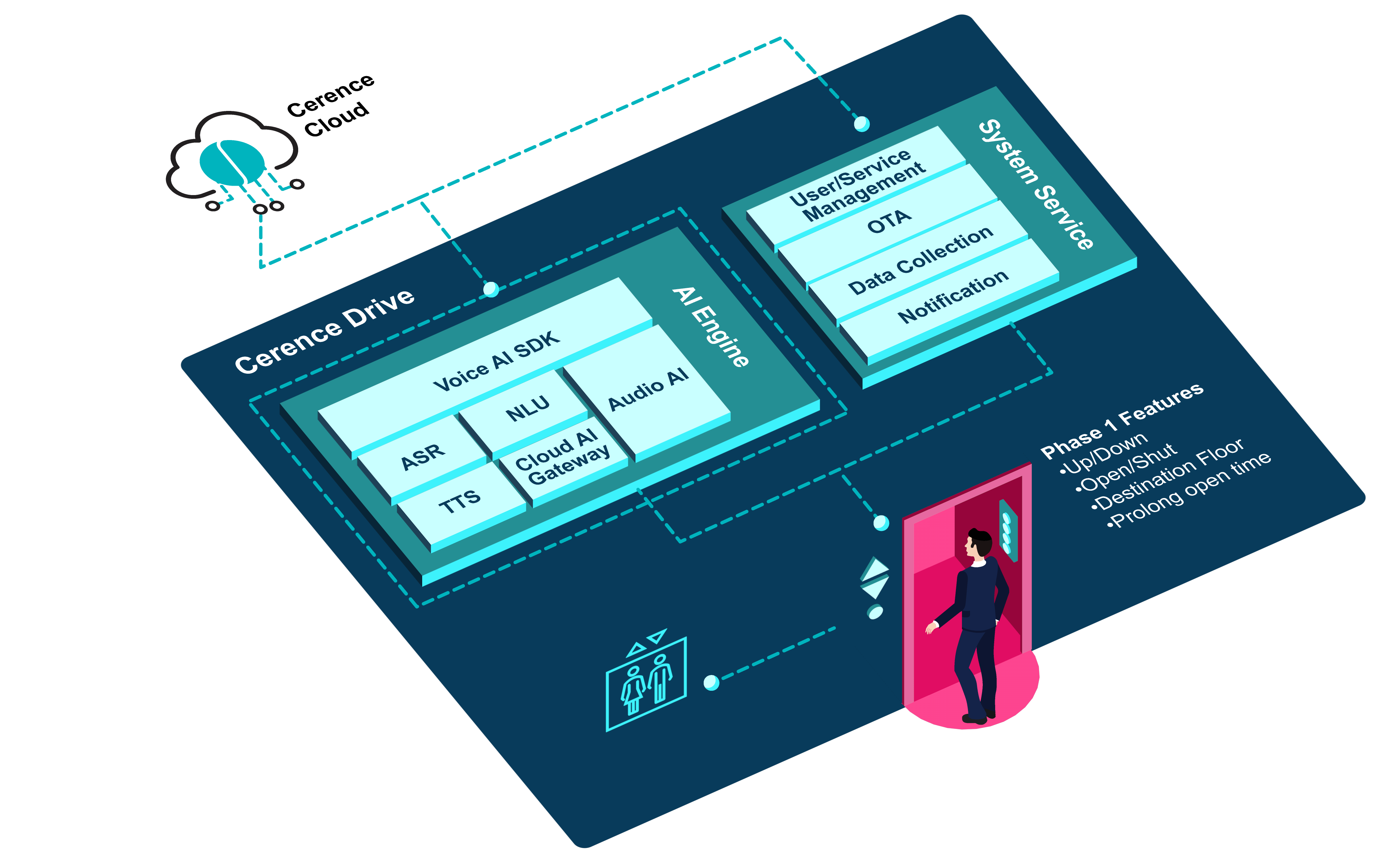 赛轮思为使用电梯在楼宇中上下的人们,提供的智能语音方案实现“⾮接触式”服务,为乘梯人提供更安全的交互体验。基于该平台与本地操作系统之间快速无缝集成的设计,乘客无需按键便可以与电梯进行交互。赛轮思智慧电梯移动平台提供了全球语言覆盖的能力,能够同时进行多语言对话,并为楼层查询服务和其他电梯的资讯内容提供云连接。