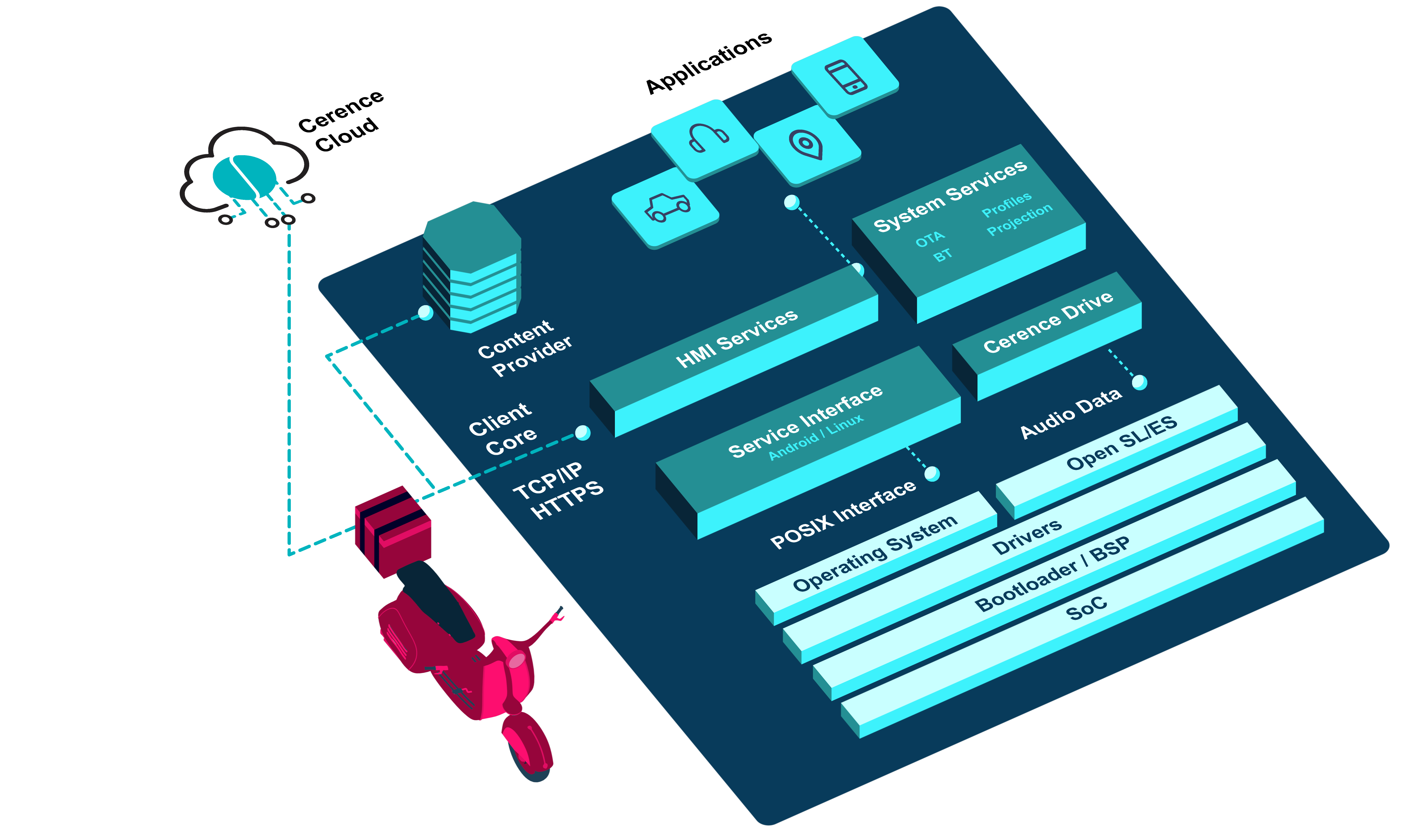 互联技术改变了驾驶体验,尤其是出行领域中快速增长的两轮车市场,其中包括摩托车,电动车和电动摩托车。通过Cerence两轮车移动平台,乘客不仅可以使用两轮专属语音助手体验骑行规划、车辆控制、导航、天气和车辆状况等主动提醒服务,还可以将手机用作扩展的仪表盘。