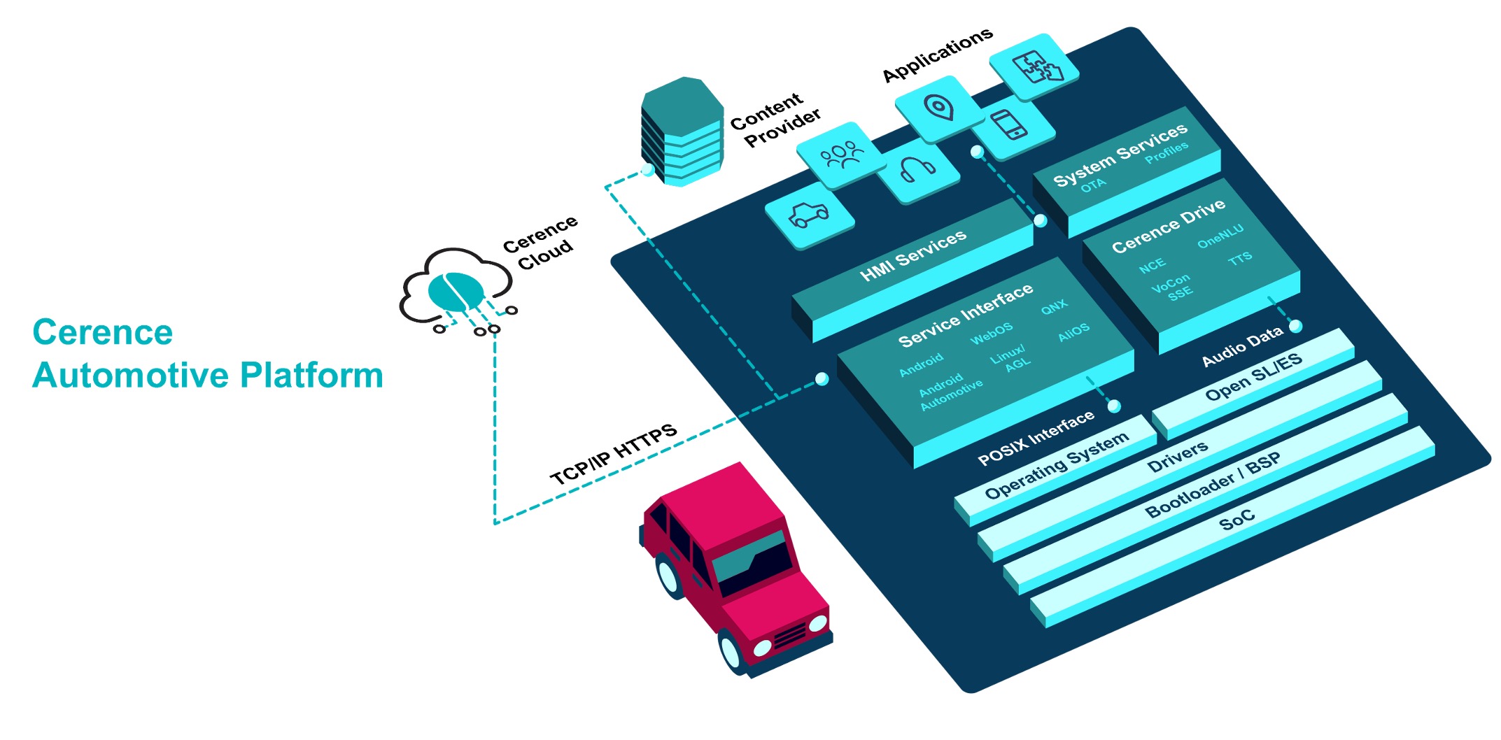 - Cerence 汽车平台——全球领先的云、端一体对话式人工智能平台,开放与任何操作系统协作,为汽车制造商和一级供应商提供了一个加快创新的灵活选择。Cerence汽车平台通过包括语音、手势和视线在内的多模态交互方式,提供了像与真人交互、个性化的体验,让驾驶者获得车内与车外数字世界的无缝连接。