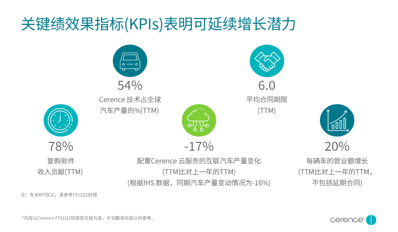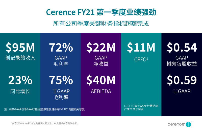 *部分内容翻译自CerenceFY21第一季度财报,只供参考。 相关财务数据和内容以英文版财报为准,内容提到的商标均为其各自所有者的资产。