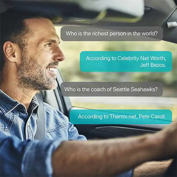 有了Cerence Browse 提供的AI内容查询服务,它将互联网搜索引擎与车载助理集成,让驾驶者可以提问一般信息或实时事件的问题(例如:“一杯咖啡有多少卡路里?”或者 “Cerence的股价是多少?”)。AI助理随即像真人与你对话一样直观和自然的回答,而不是在车机屏幕显示一个搜索结果列表。这是一种崭新的搜索引擎级知识答问体验,Cerence Browse结合语音AI将不同领域的知识带进智能驾驶舱。