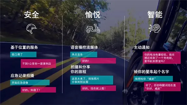 现在,骑行者可以进行导航、音乐、媒体、本地设置和智能家居设备的直观控制,在骑行的过程中双手不用离开车把或将视线从道路上移开。有了情景认知的智能推荐,骑行者还可以主动从车辆传感器和云信息中获取重要信息,以便提前优化行程。这为摩托车和电动两轮车实现智能汽车的创新功能,不仅提升了出行体验,还提高行车便利性、娱乐性和安全性。