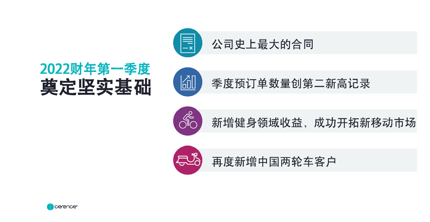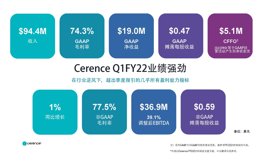 *数据来源自Cerence FY22第一季度财报,详细信息可以参考财报原文。内容提到的商标均为其各自所有者的资产。