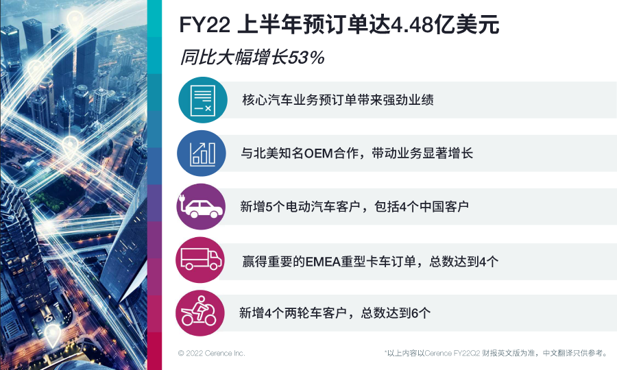 *文中数据来源自Cerence FY22第二季度财报,详细信息可以参考财报原文。内容提到的商标均为其各自所有者的资产。