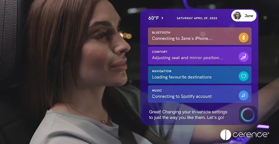 用户只需使用一句密码,Cerence Drive即可加载用户的配置文件,根据他们的偏好提供内容和信息,包括音乐、特定的导航路线和避开交通的设置路线。它甚至可以按已保存的设置调节座椅位置和温度。
