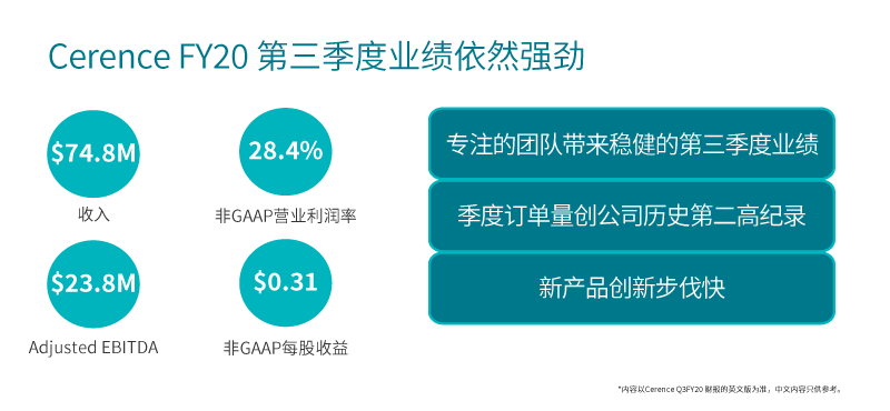 Cerence FY20第三季度财报收入远高于分析师预期,产品创新继续引领业务强劲增长