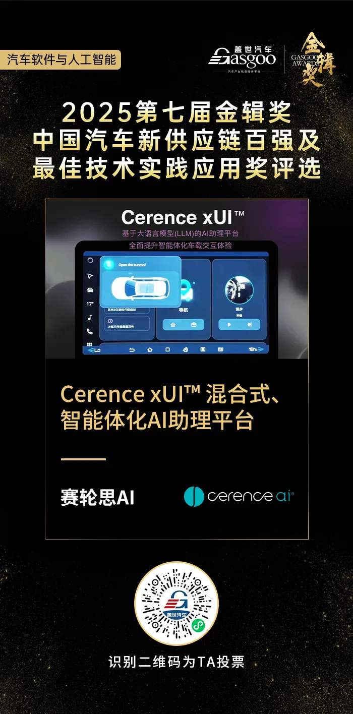 诚邀您投票支持!Cerence xUI™正在参与2025金辑奖·中国汽车新供应链百强评选